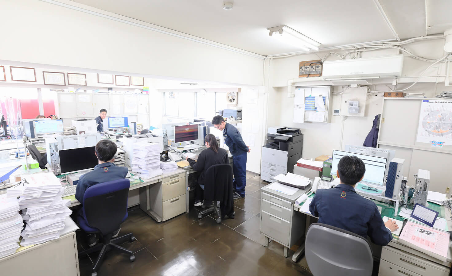 部署の垣根が低く、何でも相談しやすい家族的な雰囲気の事務所。時短勤務を活用する女性も多く、物流の全体像を把握しながら互いに支え合う、定着率の高い職場です。